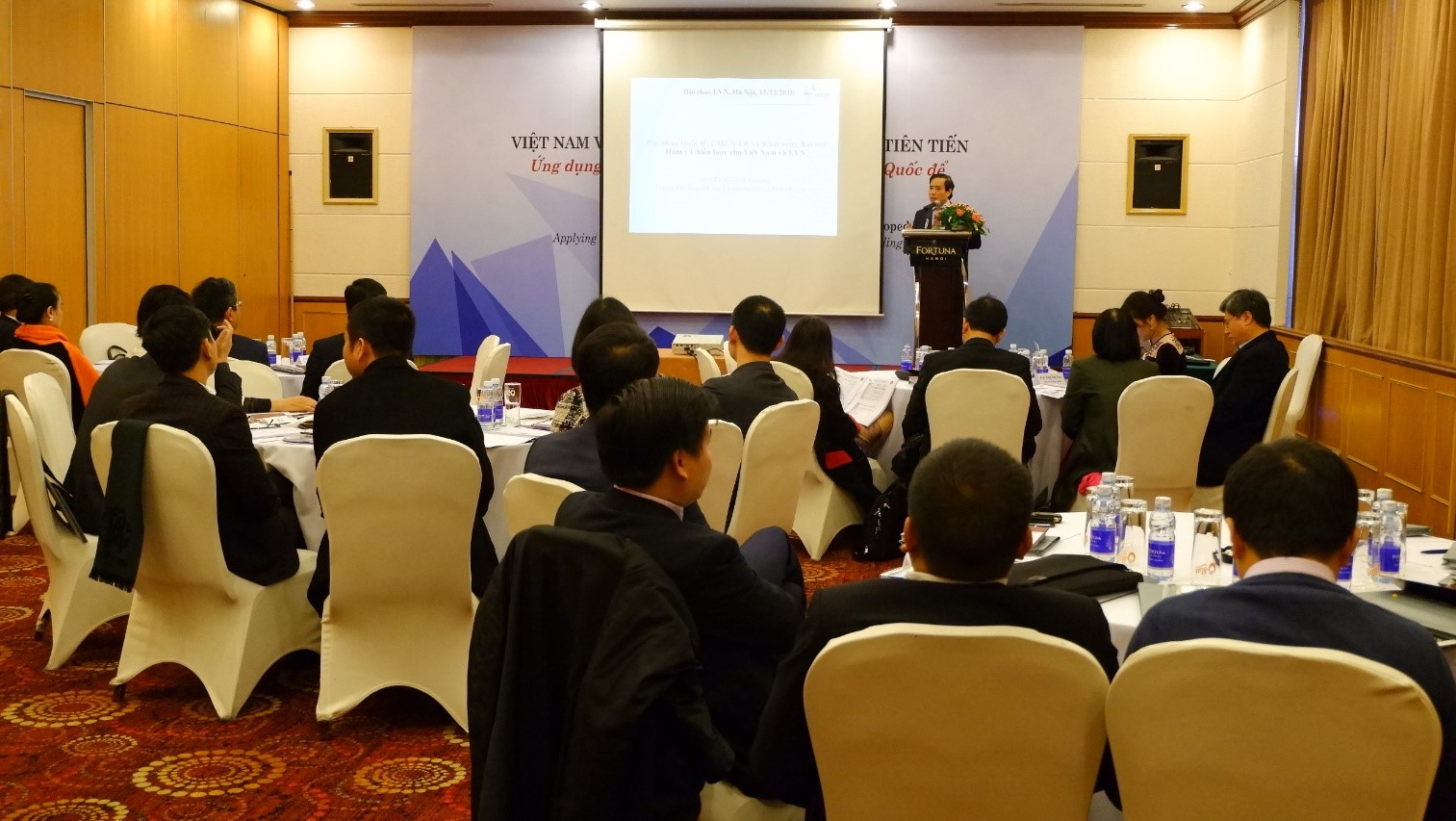 PGS.TS Vũ Minh Khương – Giảng viên trường Chính sách công Lý Quang Diệu, Đại học Quốc gia Singapore – trình bày chuyên đề về “Hội nhập Quốc tế, Cách mạng Công nghiệp 4.0 và Khát vọng Bắt kịp: Hàm ý chiến lược cho Việt Nam và EVN”. Theo PGS.TS Vũ Minh Khương, trong thời kỳ đang đổi thay nhanh chóng về công nghệ, Việt Nam cũng như các Doanh đang có nhiều cơ hội và thách thức cần đối mặt. Mặc dù Việt Nam thu hút được sự quan tâm từ các tập đoàn đa quốc gia, các đối tác thương mại lớn như EU hay Nhật Bản xúc tiến mạnh mẽ hơn các nỗ lực tự do hóa thương mại song phương và đa phương (EUVFTA, CTTPP); nhưng những thách thức từ sự bất ổn của môi trường thương mại quốc tế hay việc mải mê với cơ hội ngắn hạn có thể làm tổn hại đến tầm nhìn lâu dài và cách ứng đáp chiến lược với các thách thức và cơ hội mà tình thế đổi thay mang lại.