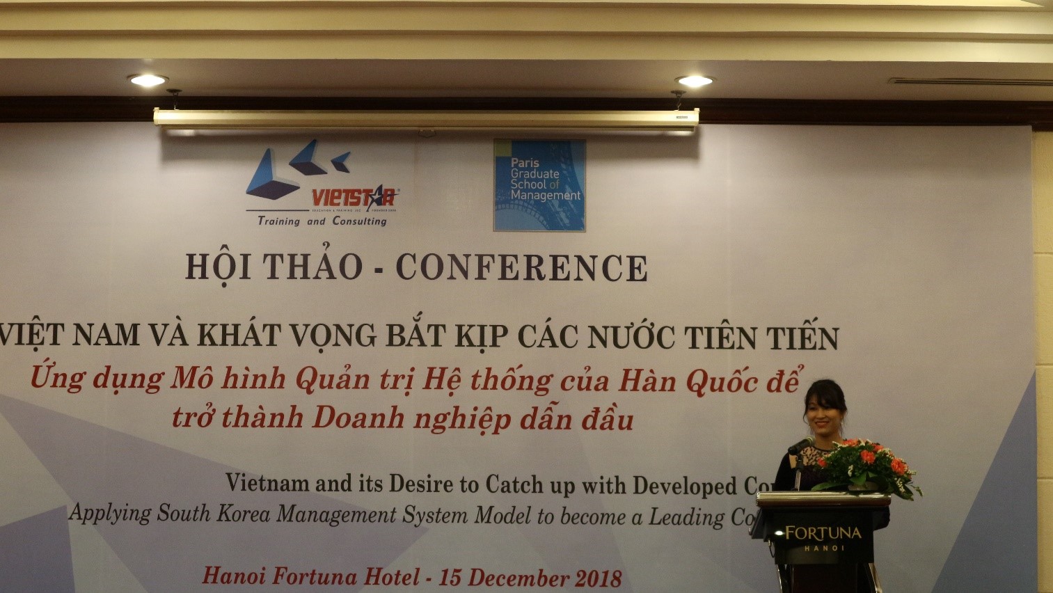 Ngày 15/12/2018, Viện Quản lý và Tư vấn VIETSTAR (VIETSTAR Institute of Management and Consulting) cùng Văn phòng Đại diện Đại học Quản trị Paris – Pháp tại Việt Nam tổ chức Hội thảo “Việt Nam và khát vọng bắt kịp các nước tiên tiến: Ứng dụng mô hình Quản trị hệ thống của Hàn Quốc để trở thành Doanh nghiệp dẫn dầu” nhằm tri ân các Doanh nghiệp đã đồng hành cùng VietStar trong các hoạt động Tư vấn và Đào tạo.