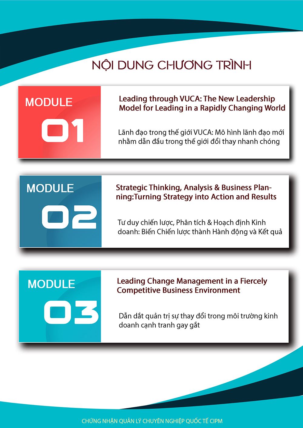 Khóa học cấp cao Dẫn dắt vượt qua khủng hoảng Covid-19” thuộc Chương trình Quản lý Chuyên nghiệp Quốc tế CIPM do Hiệp Hội Nhà Quản lý Chuyên nghiệp (IPMA – Anh Quốc) thiết kế, đánh giá cấp chứng nhận, được tổ chức nhằm giúp các Doanh nghiệp Việt Nam:
