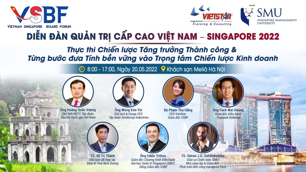 Kế thừa và phát huy thành công của Diễn đàn lần thứ nhất được tổ chức vào tháng 10/2021. Công ty Tư vấn và Đào tạo Sao Việt (VIETSTAR) và Đại học Quản lý Singapore (SMU) sẽ đồng tổ chức Diễn đàn Quản trị Cấp cao Việt Nam – Singapore lần thứ hai. Diễn dàn năm nay sẽ tập trung vào chủ đề: Thực thi Chiến lược Tăng trưởng Thành công & Từng bước đưa Tính bền vững vào Trọng tâm Chiến lược Kinh doanh.