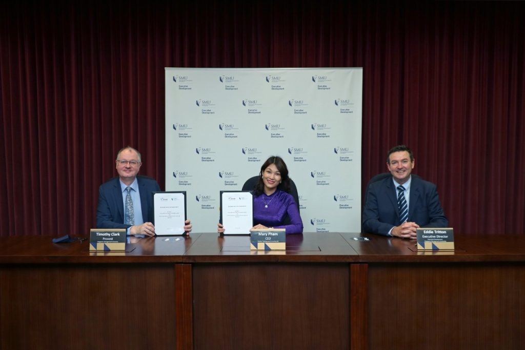 “We have long-lasting partnerships with major universities in the world and more than a decade of experience in consulting and training for large corporations and enterprises in Vietnam. We believe that the partnership signing with SMU, Asia’s leading university known for its difference in teaching methods and techniques, will contribute to supporting Vietnamese enterprises in management capability enhancement, digital transformation, and sustainable development,” emphasized Ms. Pham Thi Thu Hang.