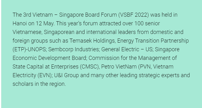 “It can be said that VSBF has been engaged by businesses in key moments and until today – it has been hailed in Vietnam, Singapore, Southeast Asian countries while spreading its influence on broader scope outside Asia with the presence of leaders from General Electric (GE)-USA, or Energy Transition Partnership (ETP)-UNOPS, etc.,” said Ms. Thu Hang.