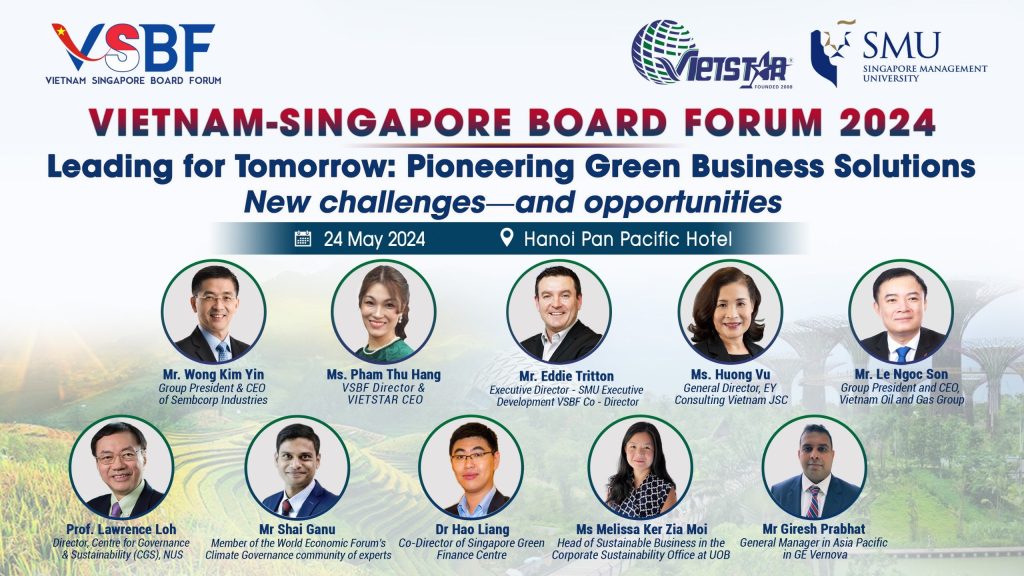 Kể từ lần đầu tổ chức vào năm 2021, Diễn đàn Quản trị cấp cao Việt Nam – Singapore (VSBF), do Viện Quản lý và Tư vấn VIETSTAR (VIETSTAR) và Đại học Quản lý Singapore (SMU) đồng tổ chức đã định vị là diễn đàn tiên phong trong khu vực về phát triển bền vững và tổ chức thường niên.